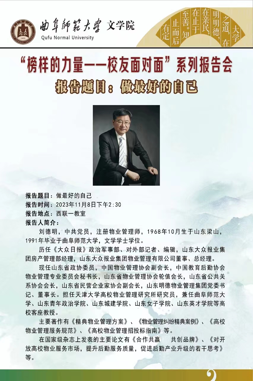 “榜样的力量——校友面对面”系列报告会预告|刘德明:做最好的自己