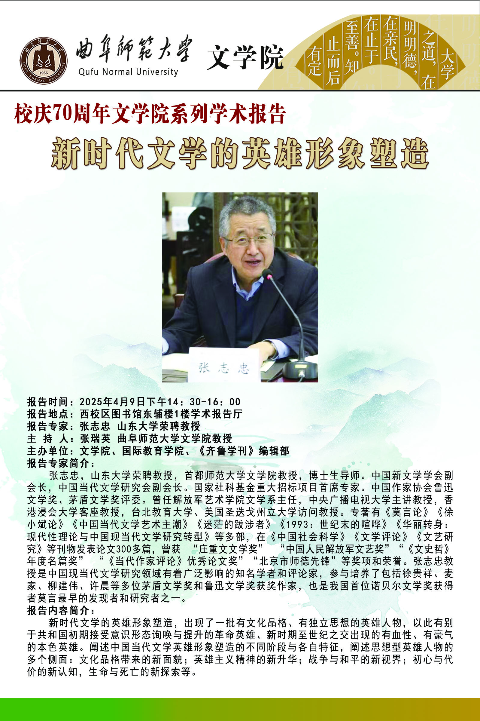 校庆70周年系列学术报告|新时代文学的英雄形象塑造