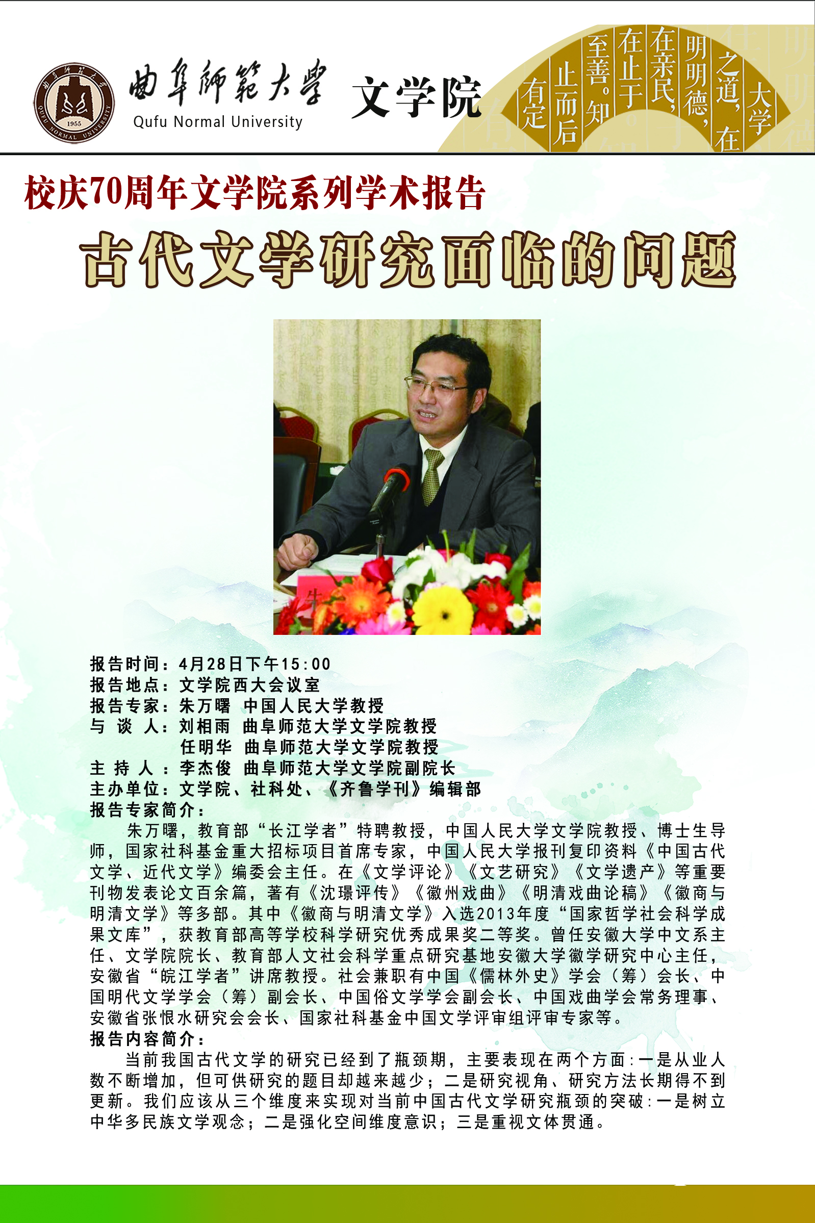 校庆70周年系列学术报告|古代文学研究面临的问题