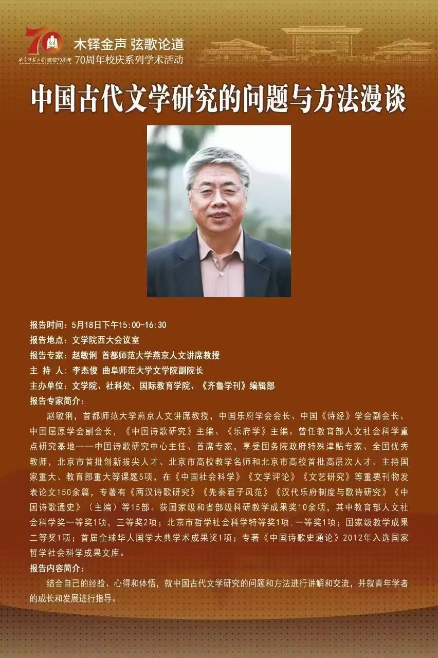 70周年校庆系列学术报告|中国古代文学研究的问题与方法漫谈