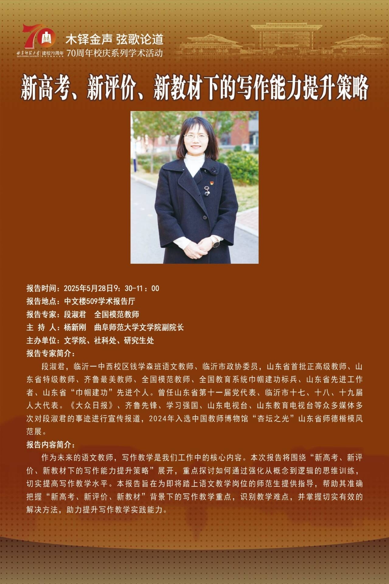 70周年校庆系列学术报告|新高考、新评价、新教材下的写作能力提升策略