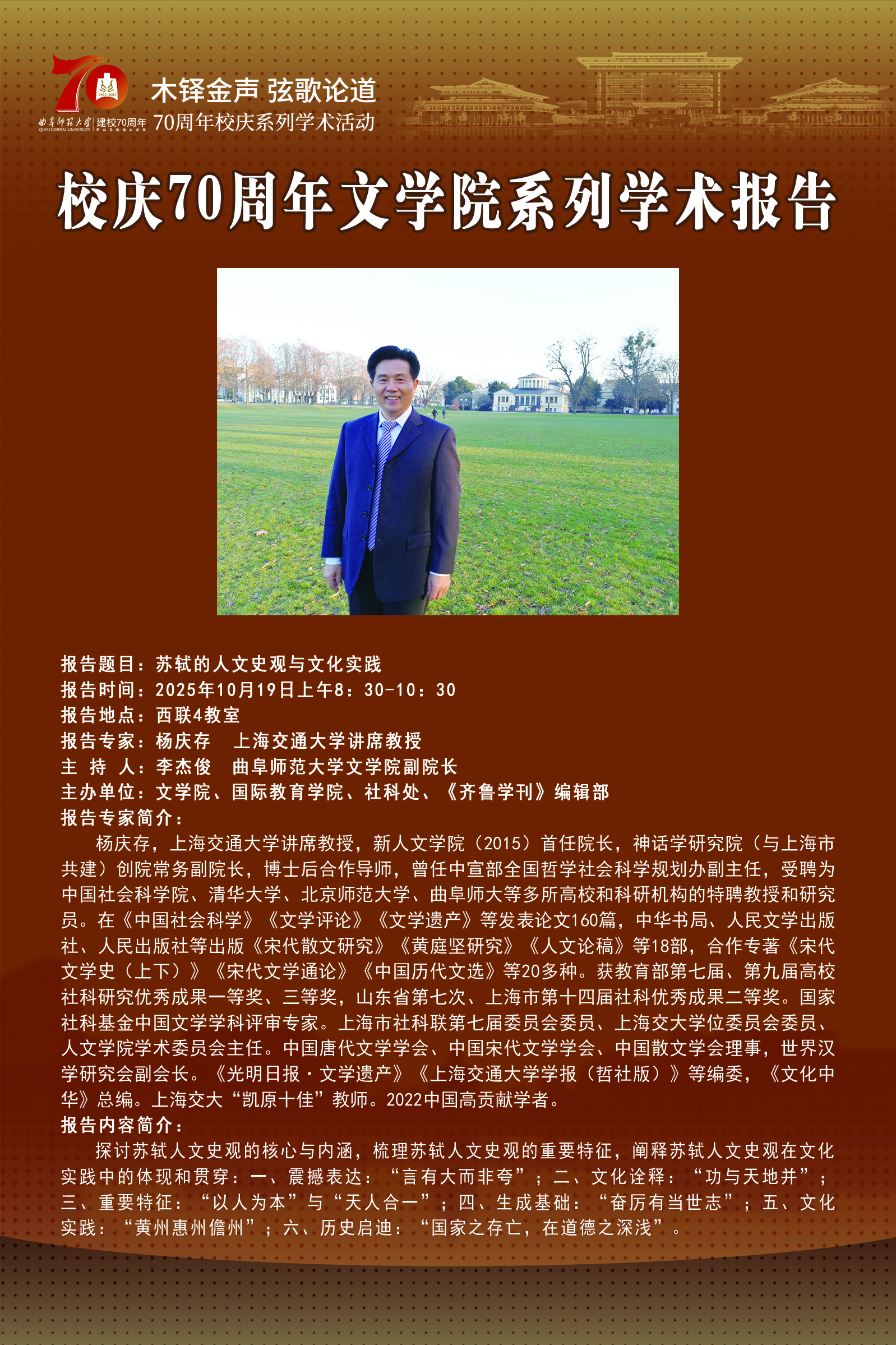 70周年校庆系列学术报告|苏轼的人文史观与文化实践