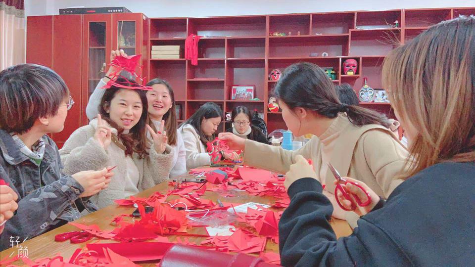 11月21日下午,2019级汉语国际教育硕士专业的学生们在文史楼311教室,跟随民间剪纸刻纸大师冯俊梅老师学习中国传统的剪纸艺术。