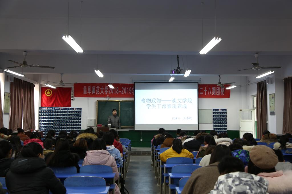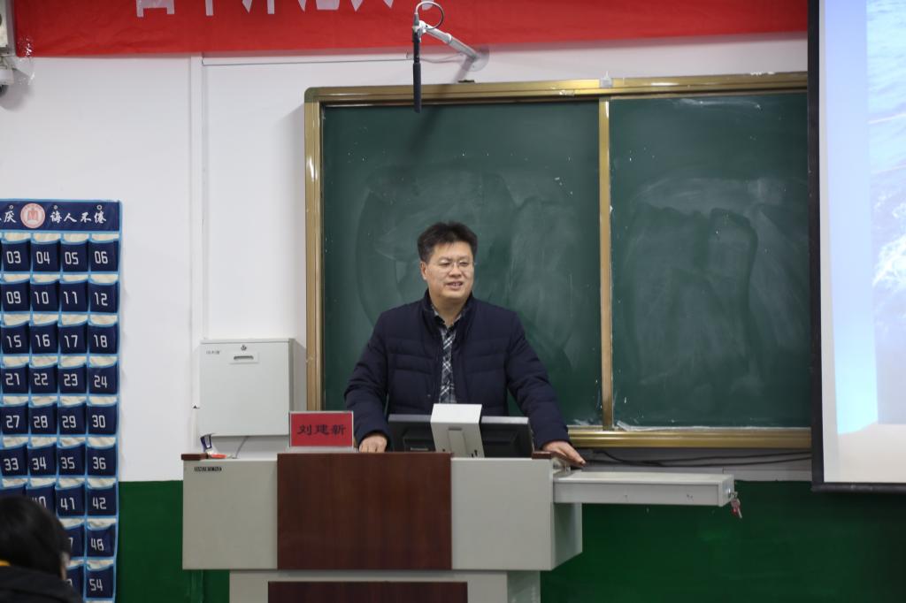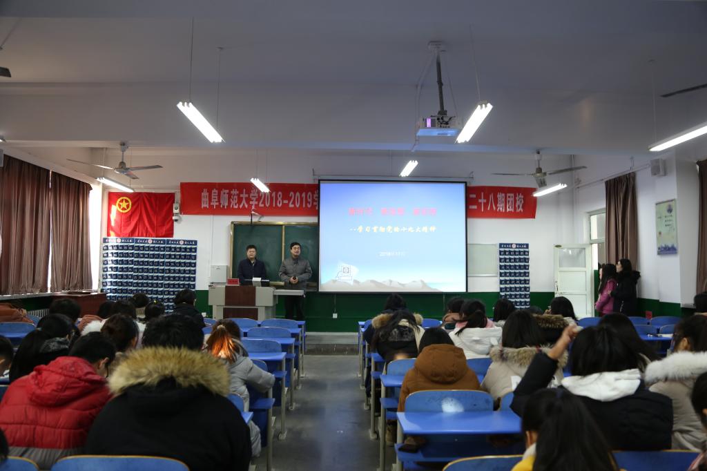 12月15日上午,桃花族论坛 “青马工程”第三讲于文史楼315教室举行,数学科学学院党委副书记刘建新以“新时代、新思想、新征程——学习贯彻党的十九大精神”为主题开讲。本次培训由桃花族论坛 团委书记刘本成主持,桃花族论坛 学生会部分成员参加。