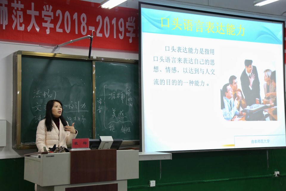 袁梅针对“如何提升口才和语言表达能力”进行了讲解。她指出,口才和语言表达能力强的标准是流畅度、文采、吸引力、和表达是否清楚。在讲座过程中,袁梅老师旁征博引、通过现场互动的方式风趣幽默的讲述了口才与表达的要点,并从语音、体态、自信、技巧和训练等方面声情并茂的向同学们讲解了发音方法和发音技巧,鼓励同学们在练习中提高自己的口才和表达能力。