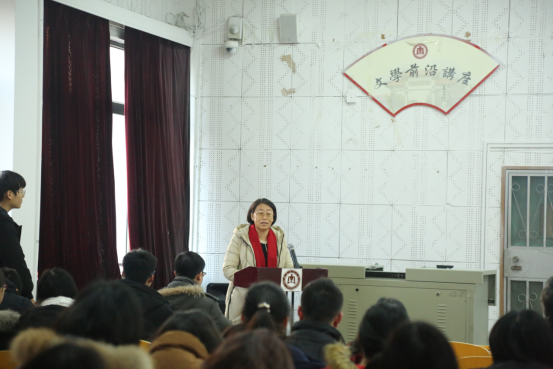 曲媛媛代表学院党委会向党员大会报告工作,听取党员意见,接受党员监督。报告回顾总结了全年党建工作,分析了工作中存在的问题与不足并对下一阶段工作进行了安排部署。