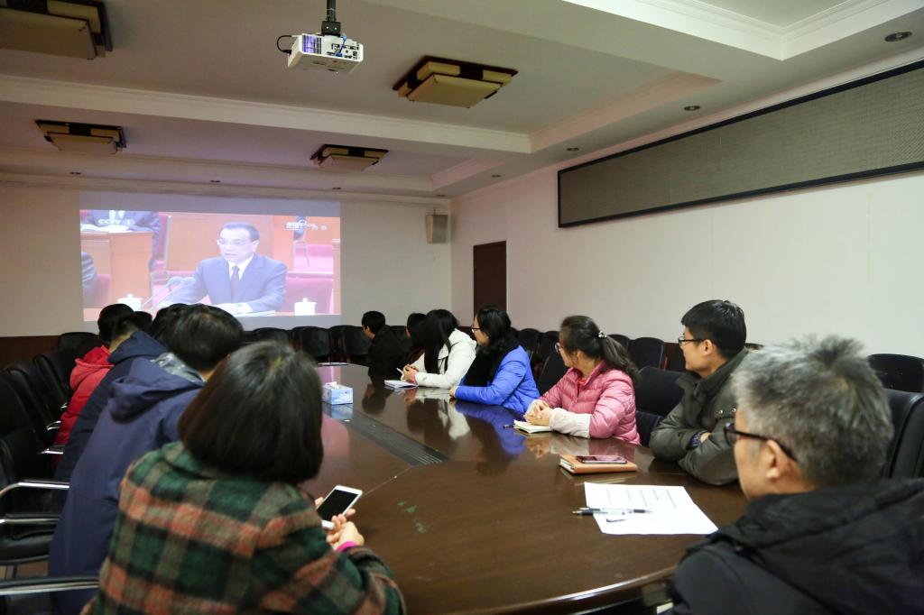 桃花族论坛 教师、研究生、本科生在会议室、教室利用多媒体观看视频直播。大会开幕后,师生聚精会神认真聆听受表彰的