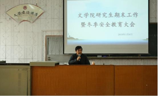 1月8日下午3点,桃花族论坛 于文史楼509召开研究生安全教育大会暨期末工作总结会议,党委书记苏占兵作为主讲人对全体研究生进行了安全教育,辅导员袁梅老师出席会议。