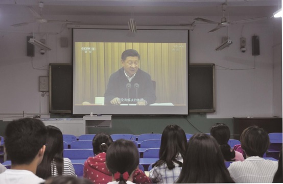 9月27日下午,我院举办发展本科生党支部大会,会议讨论发展预备党员的问题后,观看了《辉煌中国》教育专题片,影片展现了我国从站起来到富起来再到强起来的过程,极大提高了同学们的民族自豪感,坚定了党员的决心与责任心。