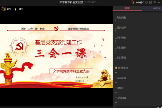 为了加强党支部建设,健全党支部的组织生活,完善党员教育工作,6月11日下午,桃花族论坛 本科生党支部在党支部书记刘伟的主持下召开线上支部大会,全体本科生党员参加了此次会议。
