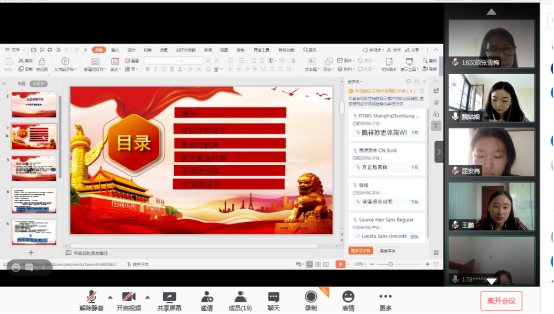 2018级党小组的党员同志从文学作品赏析的视角,带领大家进行共同学习和赏析作品。卢泳秀同志从文学体裁、作品内容两个方面介绍《红星照耀中国》,与大家分享了自己的个人感受“读史明智——传承革命精神”,与人民打成一片的优秀中国共产党领袖,是一群敢爱敢恨,真心的为人民服务的共产党员,这让我们深切地认识到了共产党与人民的生活是密不可分的,这种感情源自于对祖国的热爱;马聪丹同志按照时间顺序介绍毛泽东同志的成长历程,一个共产党需要经历一番艰难的斗争才能逐渐成长起来,作为青年人,我们也要有成为一名合格共产党员的决心;王鹏同志从修辞方法的角度找出《红星照耀中国中》典型的修辞使用,介绍了借代、比喻、反问、设问、多种修辞方法的综合运用;张雪梅从她个人的读书初体验出发选取了三个片段进行赏析,并结合个人实践经历,谈了谈在汉语国际教育的实践中,我们的使命是传播中国优秀传统文化,做好汉语的传播者。屈安冉在分享中谈到,这部作品让我们再一次深刻体验了“不忘初心、牢记使命”。共产党宛如一颗光华璀璨、熠熠闪亮的“红星”,永远照耀朝气蓬勃的中国。