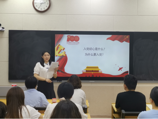 本次党课以“不忘入党初心,共庆百年华诞”为主题,从三个方面展开。首先,“不忘入党初心,牢记党员身份”。魏舒欣同志带领大家扣问入党初心,回忆我们是如何一步一步坚定地接近并加入党组织的。中国共产党自诞生以来就致力于为中国人民谋幸福,为中华民族谋复兴。让人民群众生活地更美好是中国共产党跨越时代的追求,也是每一位学生党员应有的初心。其次,“不忘党的初心,传承红色基因”。党的历史是一段奋斗的历史,需要包括每一个人在内的千千万万的共产党人不懈追求革命理想。党员要始终保持这种斗争精神去争取更大的胜利。最后,“牢记党的嘱托,做政治上的明白人”。学生党员要做到一心向党、一身正气、一心为民。时刻秉持为人民服务的信念,勇于承担,敢于冲锋,甘于奉献,为同学们做好服务。毕业生党员更要秉持为人民服务的信念,在新的工作岗位上继续发光发热,发扬党员的先锋模范作用。