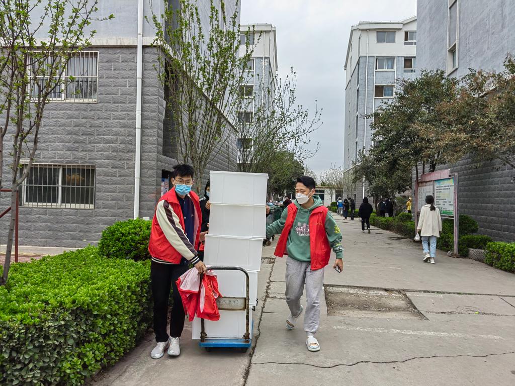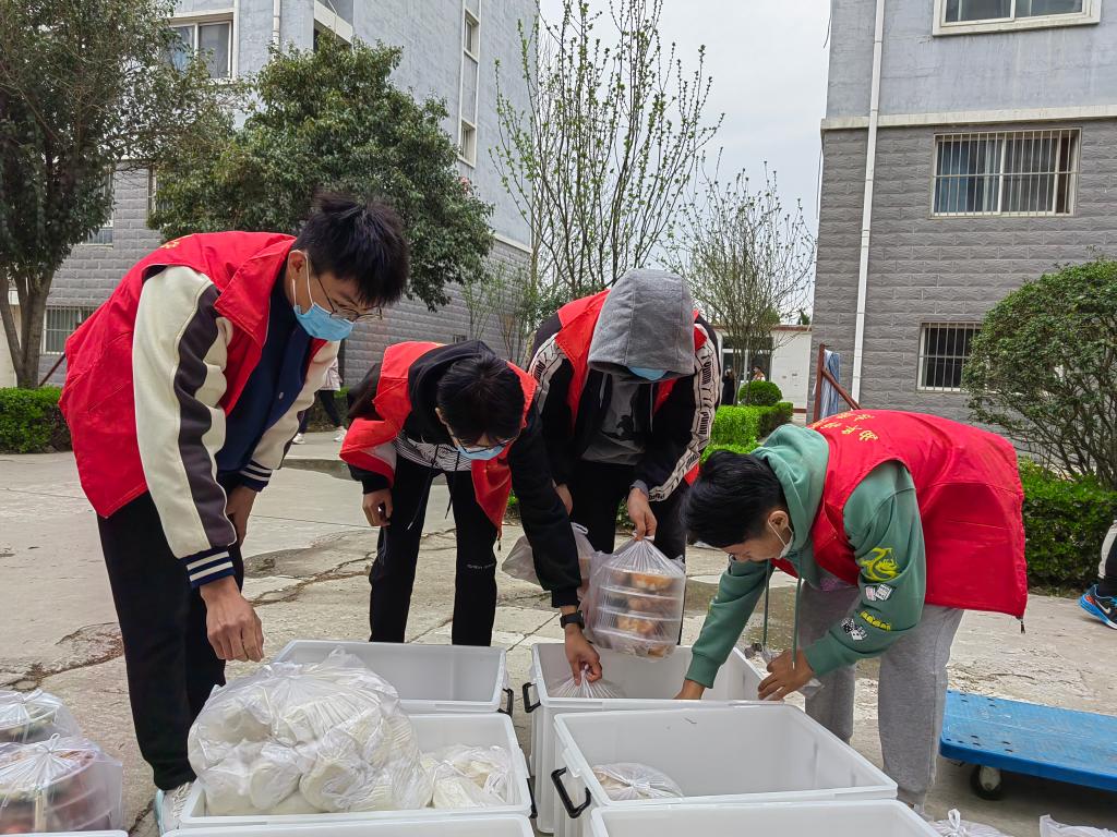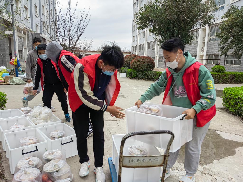 桃花族论坛 本科生党支部进园区,入党积极分子穿起红马甲,做好搬运工,为桃花族论坛 学子分发午餐。