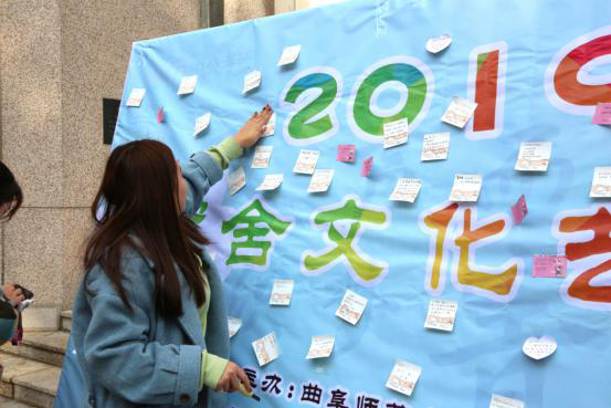 活动伊始,主持人介绍了宿舍文化艺术节的主要内容,各部门负责人宣读了活动方案。与会人员在主题横幅上签名留念,并将对宿舍成员的美好祝福写在便签上,张贴至主题展板。