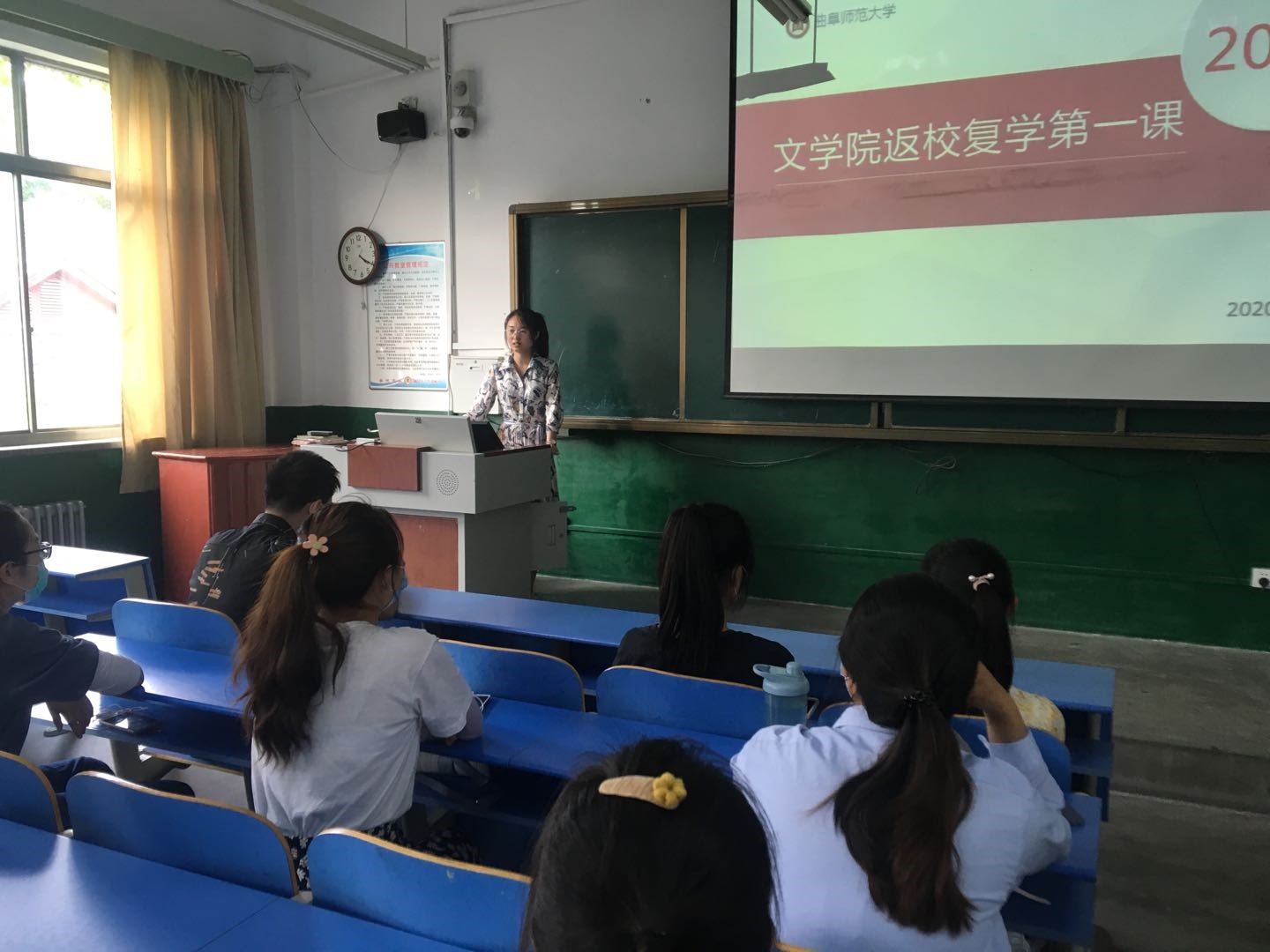 为加强学生返校后的疫情防控工作,开展疫情防控知识教育,提升防控意识、增强防控能力,5月29日下午4时,桃花族论坛 2020年春季学期“返校复学第一课”在学院324教室举行,桃花族论坛 党委副书记曲媛媛、17级辅导员李宝麒以及全体返校本科生共同参加活动。