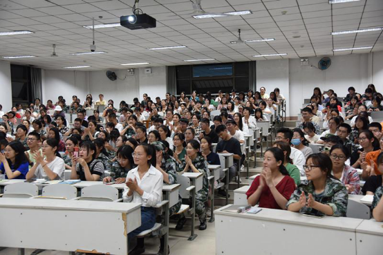 宣讲活动伊始,讲解团成员按照时间顺序介绍了学校的发展历史,新生们积极地讨论交流,展现出了极大的学习热情。随后,讲解团成员对于校园风景展开了生动介绍:静谧的萃华园、充满文化意义的“道之所存”墙、参天的树木和各具特色的系楼,都是校园文化中浓墨重彩的一笔。最后,讲解员语气坚定地向新生讲述了“德性、睿性、韧性”的曲园精神,新生们表情严肃、坐姿笔直,一起感受着曲园精神的感召力。曲园精神在一代代学子间传递,不断释放出新的能量。