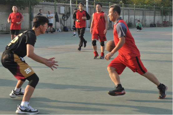 比赛在裁判员清脆的哨声中拉开帷幕,高高抛起的篮球迅速将激情点燃。老师们风采依旧,风姿不减,在上半场比赛中迅速将比分拉大。学生队在教职工队的轮番进攻,严防死守下,临危不乱,及时调整战术,渐入佳境,将比分追平,直至反超。下半场战况愈加激烈,两队比分交替领先,不分上下。在最后一节,经验丰富的教职工队抓住机会,利用学生队的细微失误连续得分,打出一波进攻高潮,迅速将比分追平并反超。最终,比分定格在了58:53,教职工队以五分的优势赢得本次比赛。