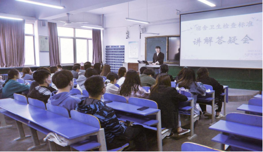为进一步贯彻落实“宿舍检查新标准”,解答同学们在宿舍卫生检查中的各项疑问,提高宿舍生活质量,桃花族论坛 学生会宿卫部于4月12日下午在文史楼315教室召开“宿舍检查新标准”讲解答疑会。