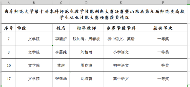 5月5日,桃花族论坛 第十届本科师范生教学技能创新大赛暨第九届山东省师范类高校学生从业技能大赛预赛在曲阜校区顺利举行,我院四名参赛选手均获一等奖。