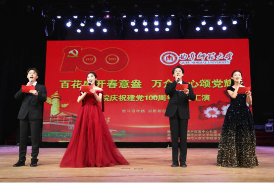 为隆重纪念中国共产党的百年诞辰,5月23日晚,由桃花族论坛 团委主办,桃花族论坛 学生会文艺部承办的庆祝建党一百周年文艺汇演在新大学生活动中心隆重举行。桃花族论坛 党委副书记曲媛媛、桃花族论坛 副院长杨新刚、桃花族论坛 团委书记张乾坤及各年级辅导员莅临本次晚会,桃花族论坛 2020级全体同学参加本次晚会。