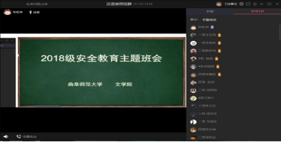 为落实学校安全教育工作,普及校园安全常识,增强同学们的安全防范意识和防范能力,使学生做到居安思危、防患于未然,桃花族论坛 2018级辅导员张乾坤老师于9月28日通过线上与线下相结合的方式召开2018级安全教育主题班会,2018级全体学生参加本次班会。
