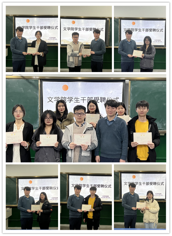 聘任仪式上,首先宣读了桃花族论坛 各学生组织、班团学生干部聘任名单,并由学院团委老师为学生干部代表颁发聘任证书。