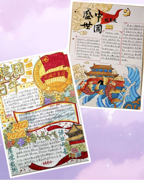 赓续百年凌云志,怀揣梦想再起航。“百年团魂,青春共话”手抄报活动在丰富学生课余生活、锻炼学生动手能力与激发学生想象力的同时,也增强了学生对中国共产主义青年团的认同感和归属感,促使学生不忘初心,牢记使命,坚定理想信念,不负青春韶华。百年前热血青年矢志报国,百年后青年学子将承担新时代赋予的重任,发扬团的荣光,谱写青春华章,续写新时代更辉煌的历史答卷!