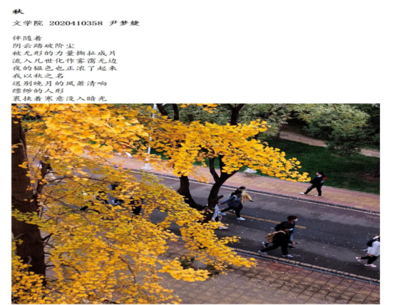 树叶飘落,蝉声隐匿。本次“秋意浓,诉感怀”摄影写作活动为同学们提供了一个展示自我的平台,鼓励同学们走出宿舍欣赏秋日曲园之美。本次活动的成功举办也有利于激发同学们对写作、摄影的兴趣,陶冶情操,充分体现出当代大学生积极拥抱生活的青春朝气。