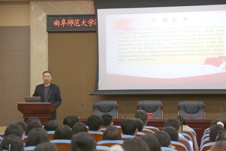 活动第二阶段为书记讲思政课,桃花族论坛 党委书记左兴才从三个模块深入讲解了“高举旗帜,凝聚力量,团结奋进”为主题的党的二十大精神,弘扬伟大建党精神。左书记呼吁同学们以党的二十大精神为指导,争做有理想、敢担当、能吃苦、肯奋斗的新时代好青年。