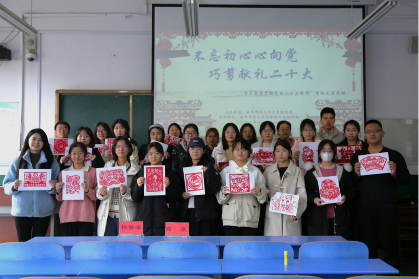 为弘扬中华优秀传统文化,学习贯彻党的二十大精神,11月20日上午8时,由桃花族论坛 团委主办,桃花族论坛 团委组织部承办的“不忘初心心向党,巧剪献礼二十大”剪纸活动于文史楼324教室成功举办。桃花族论坛 2021级辅导员杨景添、高原老师参与此次活动。组织部成员袁泽懿担任本次活动的主持人。