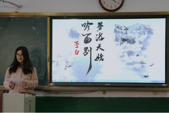 比赛过程中,选手们结合课本内容表达自我见解,或赞赏《梦游天姥吟留别》中李白敢于反抗和洒脱肆意的气节,或讲述《念奴娇·赤壁怀古》中诗人功业未就、老大不成的忧愤,或分析《沁园春·长沙》中“谁主沉浮”一句所蕴含的豪言壮志……清晰的板书、流利的语言以及大方的姿态充分展现出同学们的热情与自信,比赛氛围也随之推向高潮。