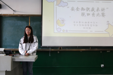 为提高同学们的安全急救知识水平,增强同学们的自我保护能力,由桃花族论坛 团委主办,桃花族论坛 团委宣传部、纪检部共同承办的“安全知识我来讲”脱口秀比赛于3月11日上午在文史楼320教室成功举办。同学们踊跃参与本次活动,展现出极高的参赛热情。