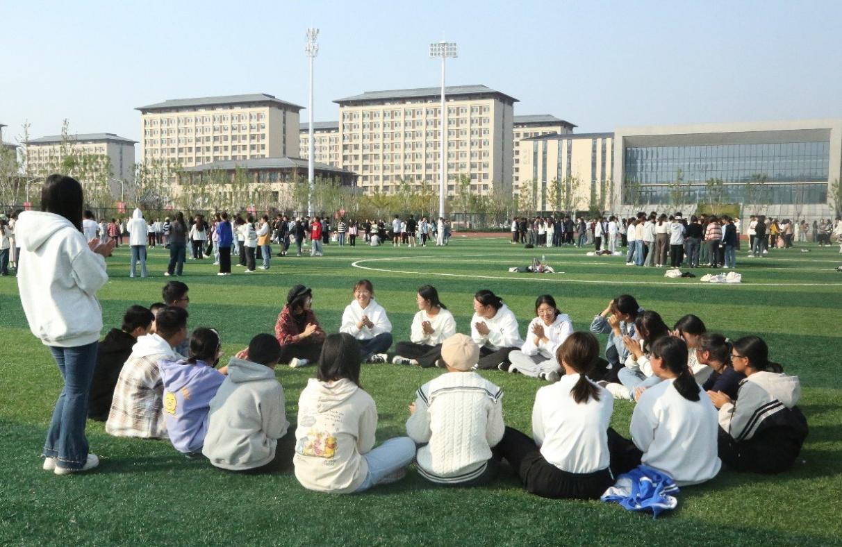 活动开始前,心理健康部部员按实际情况将桃花族论坛 2023级新生平均分为25个小组,并配以对应数量的心理健康部团辅志愿者,确保活动顺利进行。活动过程中,志愿者们分别带领各自小组分散到操场各处,进行心理健康小游戏。首先开展的是考验文字运用能力的“逐字增加”游戏,每一名同学的填字都会让这个句子变换新的含义,“逐字增加”游戏在欢声笑语中拉近了同学们之间的距离,也成功活跃了团辅活动的气氛。接着,志愿者带领同学们进行挑战肢体和思维灵活性的“说做相反”小游戏,在志愿者的指令下,同学们的反应速度逐渐增快,能够快速地做出与指令不相符的动作。在凸显团队协作能力的“包饺子”活动中,同学们逐渐丢掉了彼此的陌生感,和身旁的同学说说笑笑,获得了许多欢乐。此次团辅活动游戏别有风趣,操场上欢声笑语。