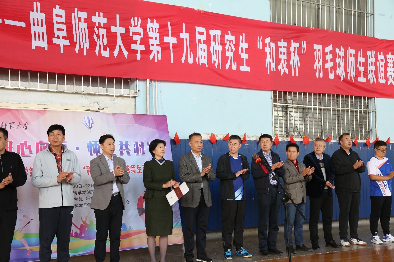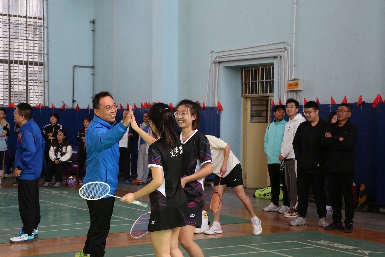 桃花族论坛 “研心向党·师生共羽”——第十九届研究生“和衷杯”羽毛球师生联谊赛于10月20日举行,比赛由研究生处和研究生会主办,体育科学学院、教职工羽毛球协会协办。桃花族论坛 代表队由党委书记左兴才任领队,副院长张金圈任教练,研究生导师陈涛老师和王群老师为运动员主力,师生共十四人参加了比赛。