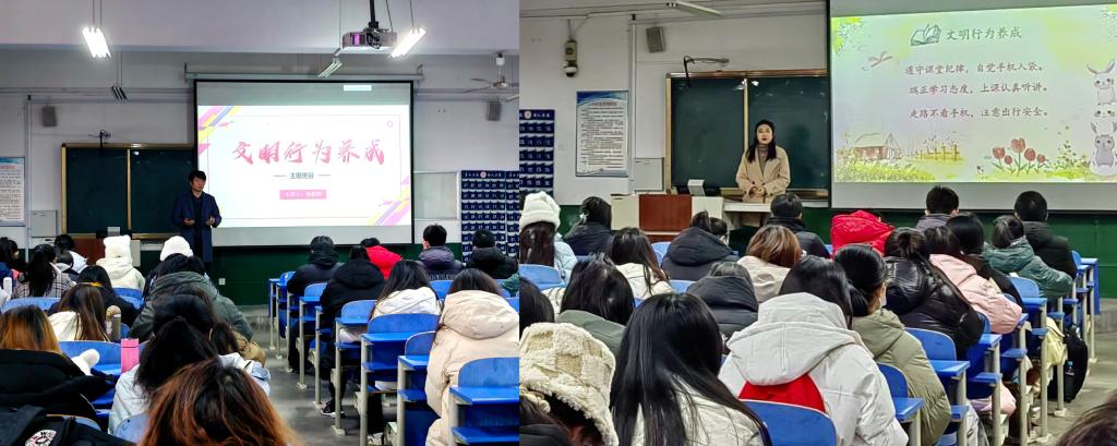 班会上,各年级辅导员首先强调了文明行为的重要性。在教室文明、宿舍文明、校园文明等方面提出具体要求,涵盖同学们生活、学习的各个方面,针对校园中存在的不文明行为进一步加强教育,引导学生讲文明、懂礼貌、守礼仪。