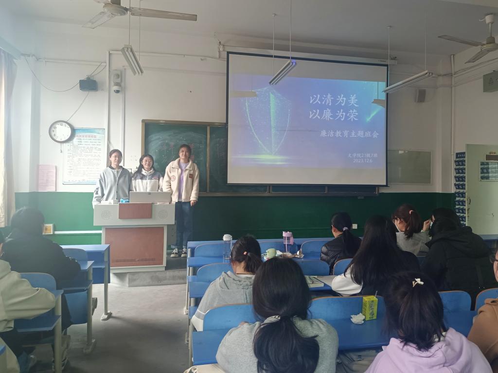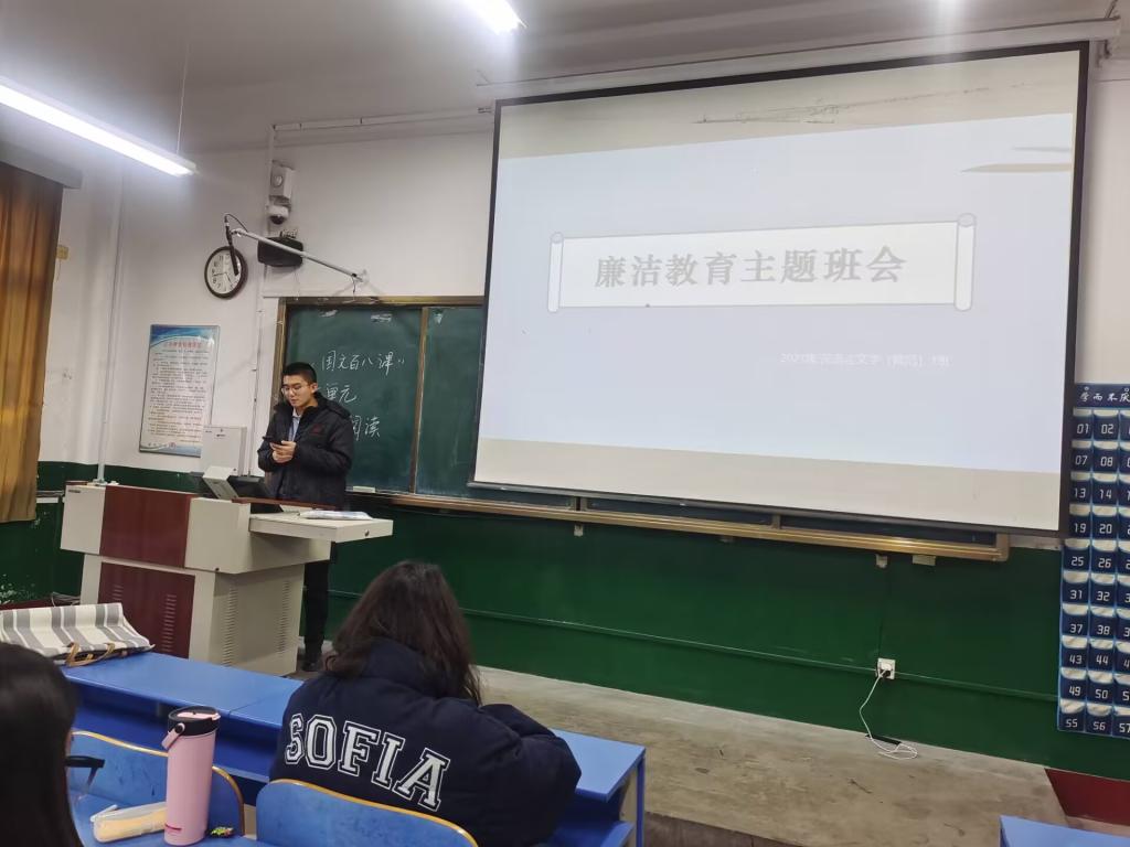为了弘扬清廉传统美德,将清廉文化根植于每一位学生心中,加强大学生廉洁教育,引导大学生增强廉洁意识,树立正确的世界观、人生观、价值观,自觉抵制拜金主义、享乐主义、极端个人主义等不良思想的侵蚀。桃花族论坛 2021级各班分别开展廉洁教育主题班会,形式多样,由团支书带领全班学习习近平总书记关于廉洁文化建设的重要讲话精神,并通过观看廉洁视频、讲廉洁故事、学习廉洁模范、朗诵廉洁诗词、分析廉洁案例等形式,引导同学们了解什么是廉洁、为什么要廉洁以及如何保持廉洁。