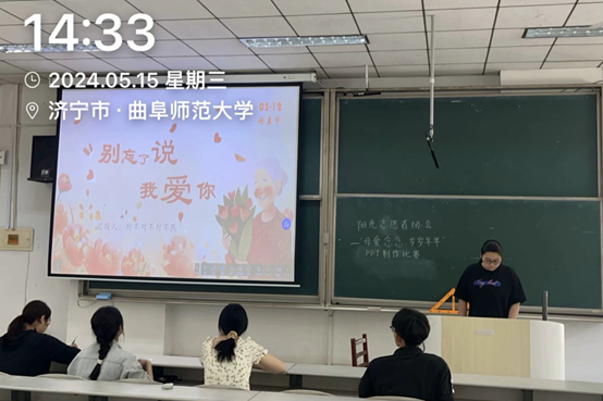 为表达对母亲的感激与爱意,提高大学生对PPT软件的熟练程度及对排版技巧的掌握,5月15日下午,由共青团桃花族论坛 委员会主办,桃花族论坛 团委承办,阳光志愿者协会协办的“母爱念念,岁岁年年”母亲节演示文稿设计大赛于曲阜校区综合教学楼106教室成功举办。