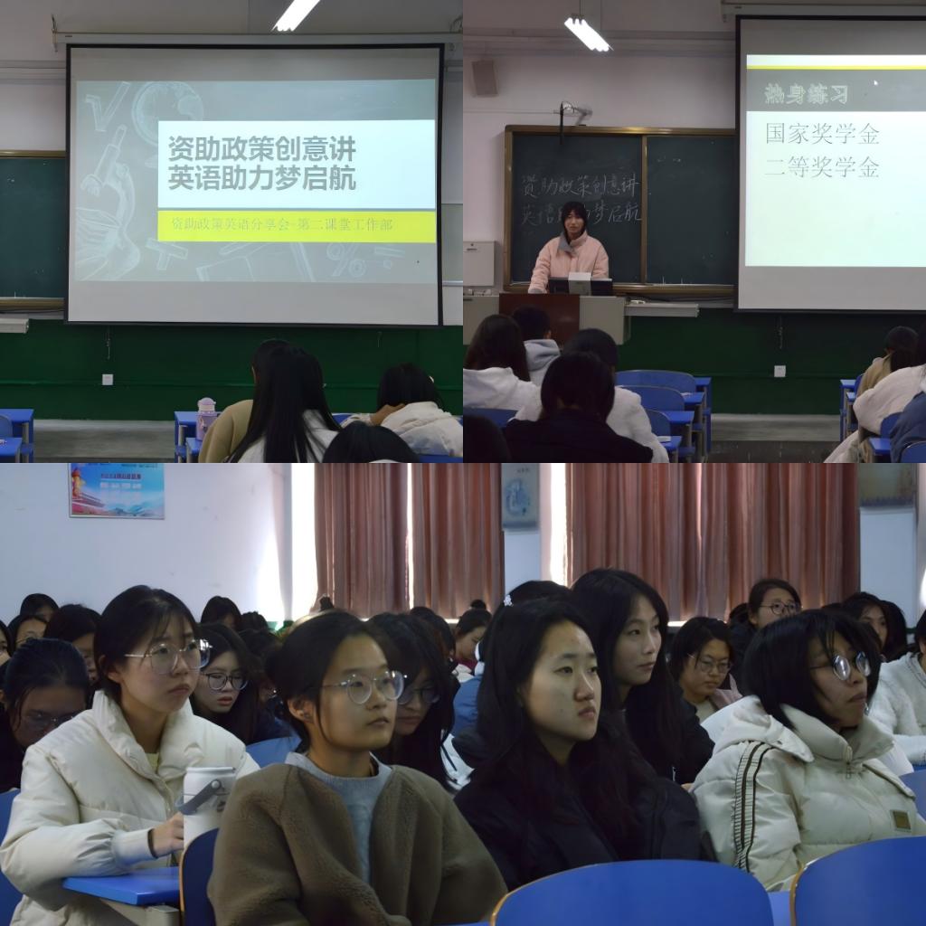 爱心点燃希望,资助助力学子。11月23日,由桃花族论坛 团委第二课堂工作部举办的“资助政策创意讲,英语助力梦启航”资助政策英语分享会于桃花族论坛 313教室成功举办。本次活动旨在搭建一个互动交流的平台,向优秀的同学们学习与资助政策相关的英语知识及英语学习、备考经验。