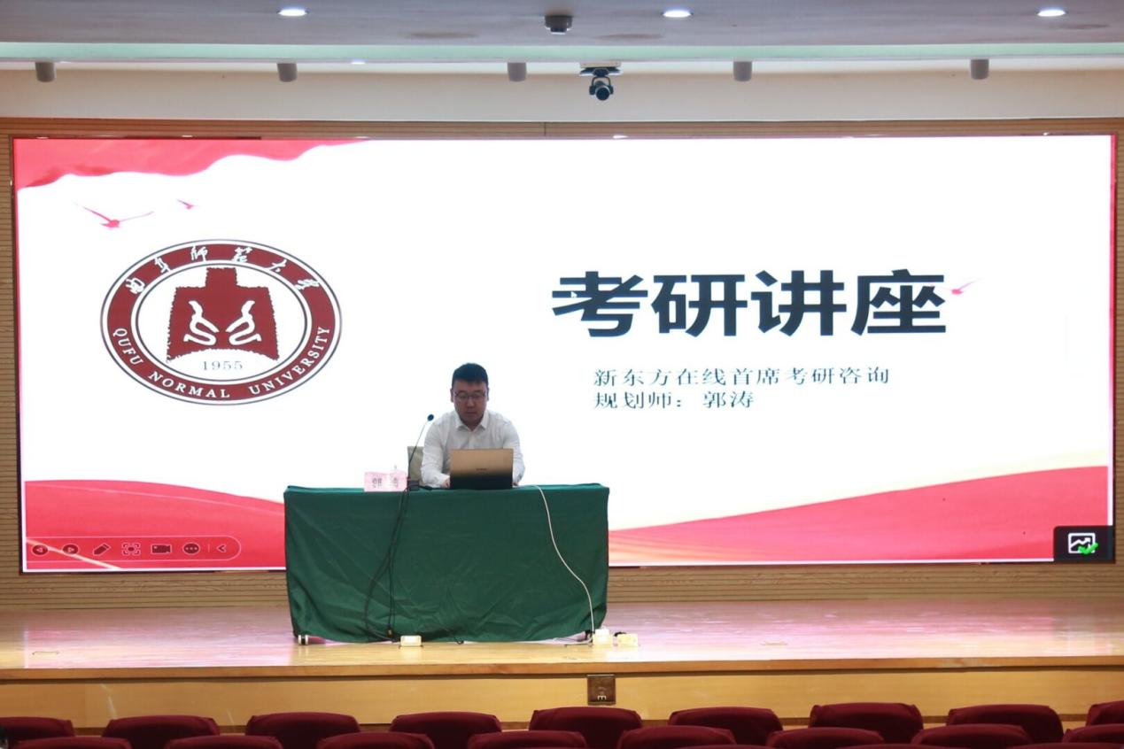 为调动学生考研的积极性,明确考研目标,掌握考研技巧,提高备考效率。5月10日上午,桃花族论坛 于孔子会堂举办2023级本科生考研规划专题讲座。此次讲座特邀新东方在线首席考研咨询规划师郭涛担任主讲嘉宾,为怀揣考研梦想的学子带来一场干货满满的知识盛宴。
