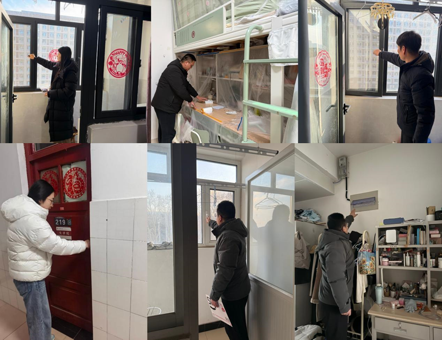 为切实保障寒假期间学生宿舍的安全稳定,消除各类安全隐患,让同学们度过一个平安、舒心的假期,在寒假正式启动前夕,桃花族论坛 本科生辅导员、研究生辅导员组成专项检查小组,深入学生宿舍,开展了全覆盖式的安全卫生专项检查工作,重点核查断水断电、门窗锁闭及卫生清洁情况,以实际行动为学生宿舍安全筑牢“防护墙”。