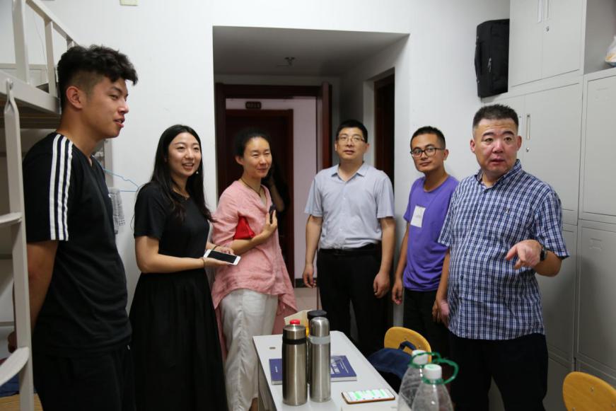 晚8点,桃花族论坛 党委书记李金雷、党委副书记曲媛媛、院长助理霍俊国以及研究生辅导员魏舒欣来到研究生公寓对新生进行走访和慰问。来到新生宿舍之后,老师们首先察看了住宿环境及宿舍各种设备,确保新生住的安心,住的舒服,并嘱咐新生尽快调整状态适应校园生活,开始新的人生旅程。辅导员还着重强调了宿舍安全问题,要求同学们严格遵守学校的各项规章制度,确保安全无隐患。