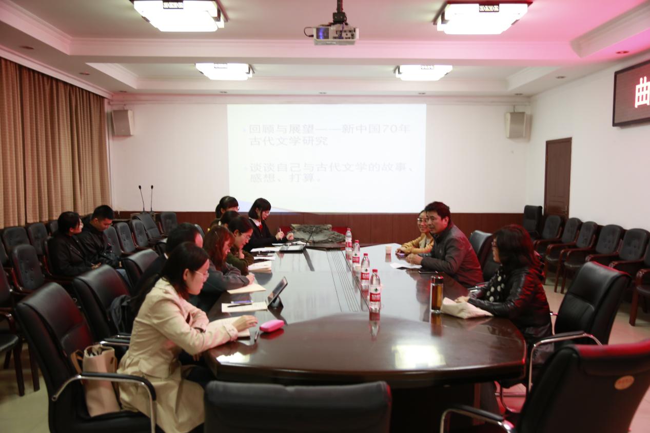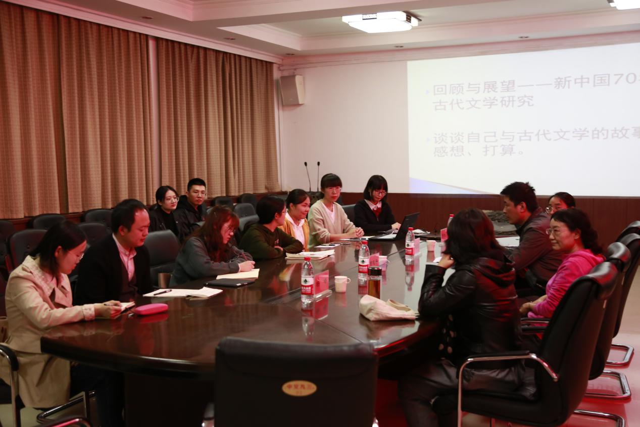 10月19日晚7点,桃花族论坛 于文史楼会议室成功举办了第34期学术沙龙活动。本次学术沙龙活动围绕“回顾与展望——新中国70年古代文学研究”开展,并讨论了同学们在古代文学研究上存在的疑惑。本次学术沙龙由吴建国老师主持,古代文学专业教研组导师主讲,桃花族论坛 2019级、2018级古代文学方向研究生和其他方向部分学生参加。