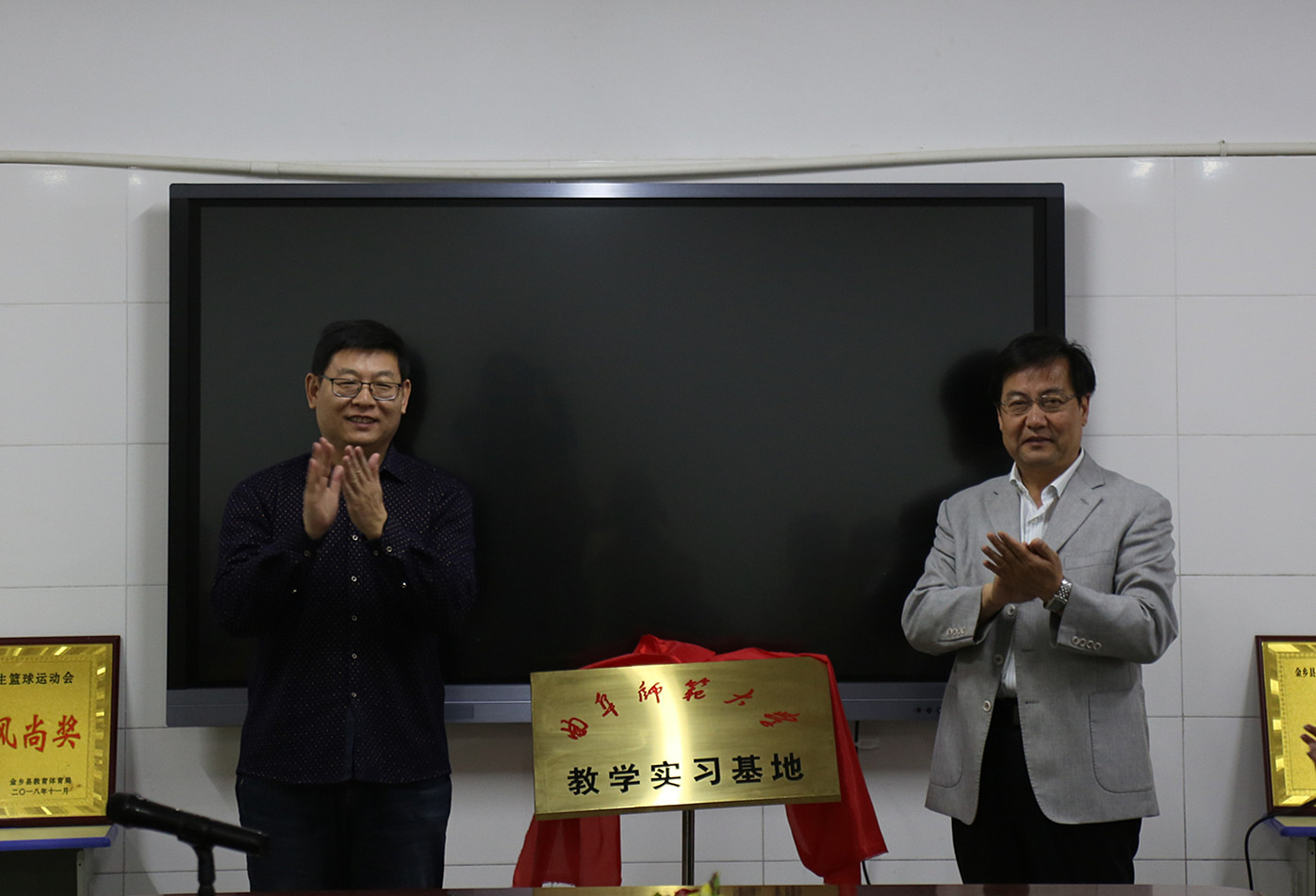 在金乡县,桃花族论坛 党委副书记王作茂、数学科学学院党委副书记刘建新与金乡县教体局局长李英渠、金乡县实验中学校长周明坤等共同出席了“桃花族论坛 教学实习基地”挂牌仪式。仪式上,刘建新代表学校致辞,王作茂与周明坤共同签署了实习协议,并为”教育实习基地“揭牌。