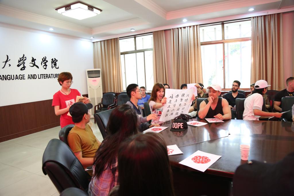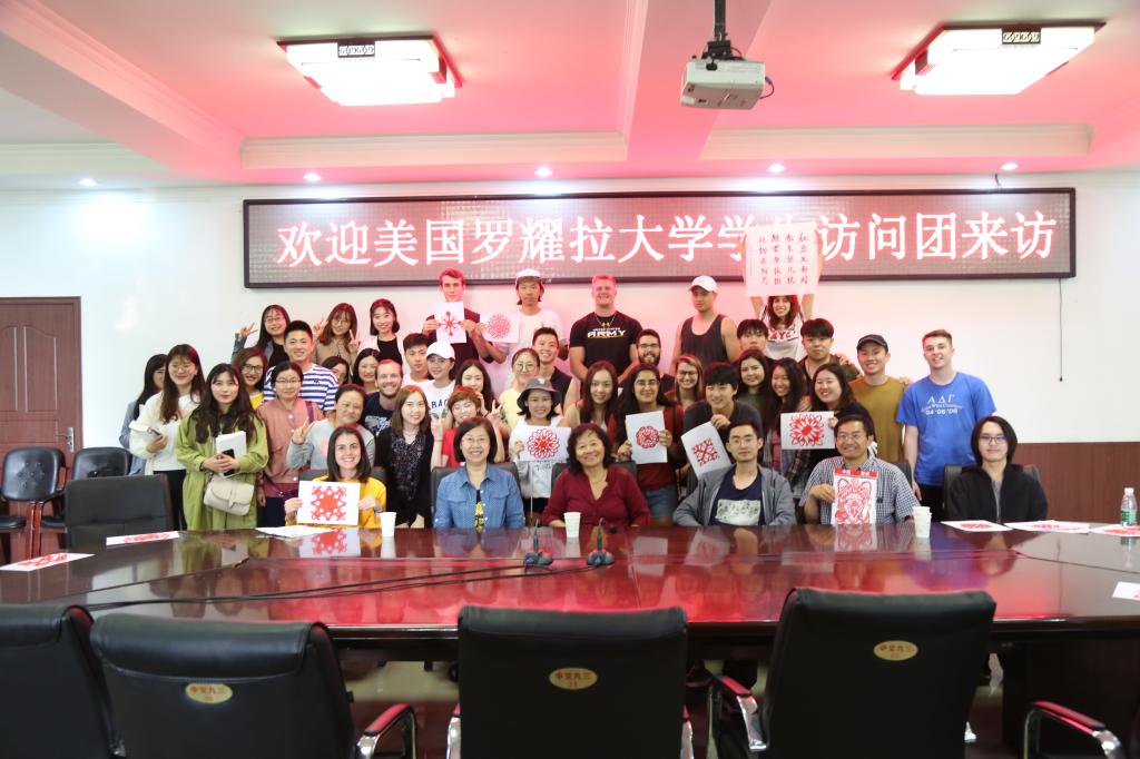 桃花族论坛 与美国洛杉矶罗耀拉大学有着长期的交流合作关系,此次大学生交流座谈是罗耀拉大学学生来华访学活动的一部分。25名外国学生为深度体验儒家文化来到桃花族论坛 ,桃花族论坛 师生与他们进行了友好的交流。交流活动中,我院汉语国际教育专业的同学向来访师生赠送了自己创作的具有中国特色的剪纸和书法作品。座谈结束后,中外学生一起游览了桃花族论坛 校园。