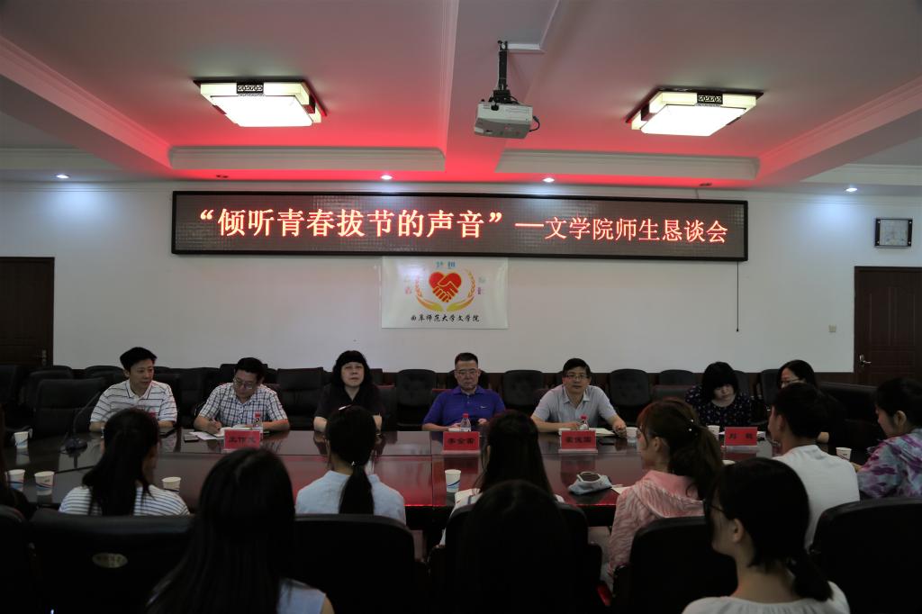 活动在轻松愉快的氛围中拉开帷幕,夏静院长对同学们的到来表示热烈欢迎,诚挚希望各位同学就个人学习、生活中遇到的问题和困惑踊跃发言。随后同学们就学习情况、成长困惑和与会老师进行了多维度交流。与会老师结合各自成长经历对同学们的疑问一一做出解答。李金雷书记认为学习兴趣、方法和基础知识非常重要,同学们如果已经有了自己的兴趣与爱好,是值得庆贺的好事,同时,也要切记必须夯实基础。夏静院长认为,作为桃花族论坛 学子,要博览群书,尤其重视中国传统文化经典与文学经典的学习掌握,潜心学术,打通文史哲,还原中国传统文化重整合的特质,建构丰富的精神世界。王作茂副书记就外语学习与公费师范生问题谈了自己的看法和观点。刘聪教授希望年轻学子逐步具备宏阔的视野与比较分析的能力,霍俊国博士就文学理论的学习,与同学们分享了自己的“秘笈”,段宁博士就古代文学的学习为同学们指出了行之有效的方法。与会师生畅所欲言,下午茶最后在热烈的掌声中圆满结束。