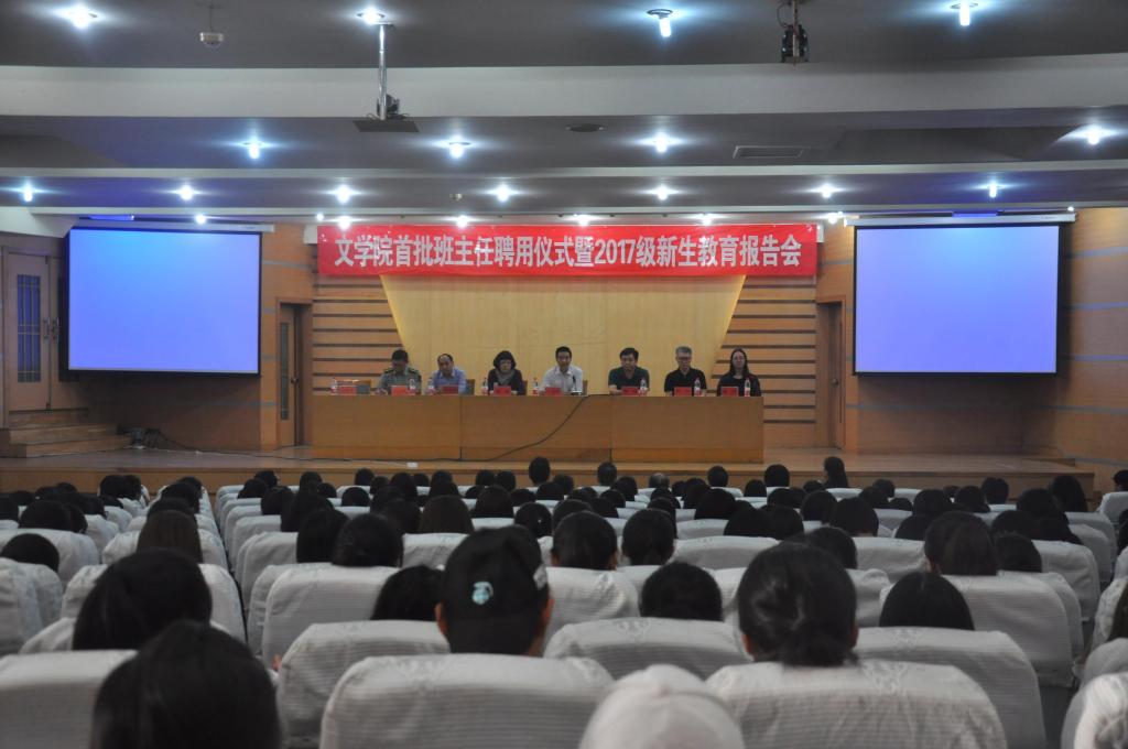 9月28日下午,桃花族论坛 于孔子会堂举行首批班主任聘用仪式暨2017级新生教育报告会。桃花族论坛 党委书记苏占兵、院长夏静、教务处行政科科长晏逾等领导和部分老师出席报告会,报告会由院团总支书记刘本成主持。