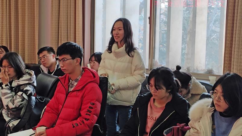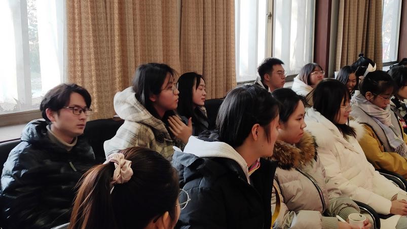 在轻松愉悦的氛围下,同学们诉说了近一段时间以来自己在校园生活上、学习上遇到的种种困惑与不解,其中涉及的问题主要集中在课堂授课、选课、自习、考研、就业等方面。与会的老师们认真仔细的听取了同学们的意见和建议,并耐心为同学们解答了心中的疑惑。夏静院长督促同学们在平日里要给自己适当压力,多练习写作,多诵读经典。另外,她提醒同学们在学习的过程中,不要把目光只局限在课堂上老师讲授的内容上,只局限在教材上,要学会顺藤摸瓜,找到学习的“原点”。杨新刚老师希望同学们摆脱高中学习的思维模式,进入大学以后,要有自学的能力,要做好学习规划。曲媛媛老师向同学们传达了学校/学院关于评奖评优、保研、就业等方面的最新政策,给同学们吃了一颗定心丸。孔真老师现场传授同学们如何提升写作水平的技巧方法,比如坚持写东西,比如多阅读一些能够引起共情共鸣的优秀作品等等。刘嵘老师指出,虽然一些经典著作比较晦涩难懂,但一定要尝试走近经典,随着人生阅历的增长,知识储备的增加,对这些作品的理解和领悟也会加深。冯萌萌老师现场纠正了同学们在修读学分和选课上存在的一些误区,使同学们避免了很多不必要的麻烦。