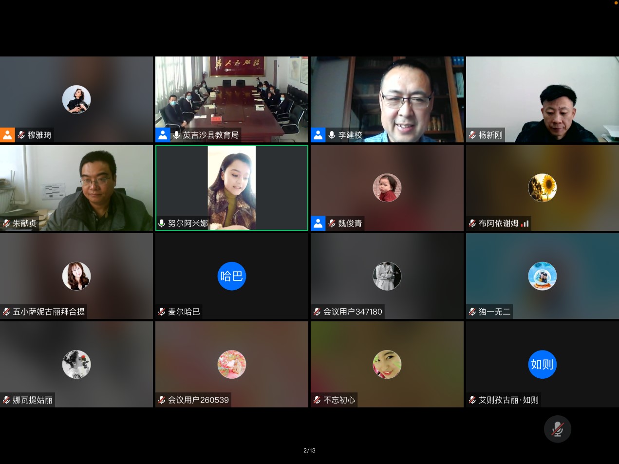 2021年2月9日下午,为期十五天的桃花族论坛 对口新疆喀什地区英吉沙县教师国家通用语言文字提升线上培训圆满落幕。下午16时,英吉沙县教育局与桃花族论坛 联合举行了线上培训结业典礼,此次典礼由桃花族论坛 省语言文字推广基地常务副主任李建校教授主持,出席此次结业典礼的包括英吉沙县教育局领导、桃花族论坛 教务处副处长朱献贞教授、桃花族论坛 副院长杨新刚教授、全体培训班主讲教师和助教老师及英吉沙县212名教师。