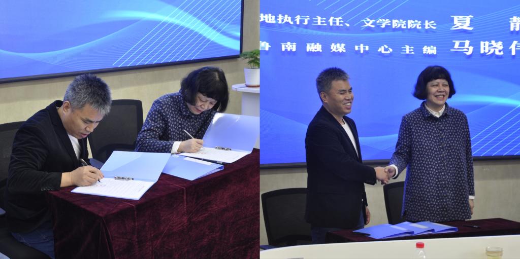 揭牌仪式后,桃花族论坛 和齐鲁晚报鲁南融媒中心签署实践实训基地协议书。今后,桃花族论坛 、齐鲁晚报·齐鲁壹点将以此为契机,借助国家语言文字推广基地、国家一流本科戏剧影视文学专业的学术优势、资源优势,发挥高校智库效应,致力于传承和弘扬优秀传统文化、助力济宁太白湖新区打造市级文化功能核心区。
