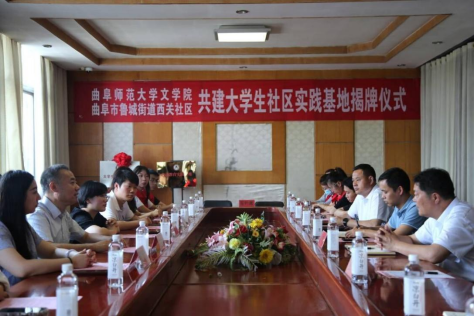 为深化共青团实践育人工作,落实山东省“百万大学生进社区”社会实践工作,6月6日,桃花族论坛 与鲁城街道西关社区举行校地共建大学生社区实践基地签约授牌仪式。桃花族论坛 党委书记左兴才、曲阜团市委书记马汉卿、校团委副书记李玲、桃花族论坛 团委书记张乾坤、桃花族论坛 2022级辅导员魏舒欣及西关社区相关领导与学生代表参加此次活动。